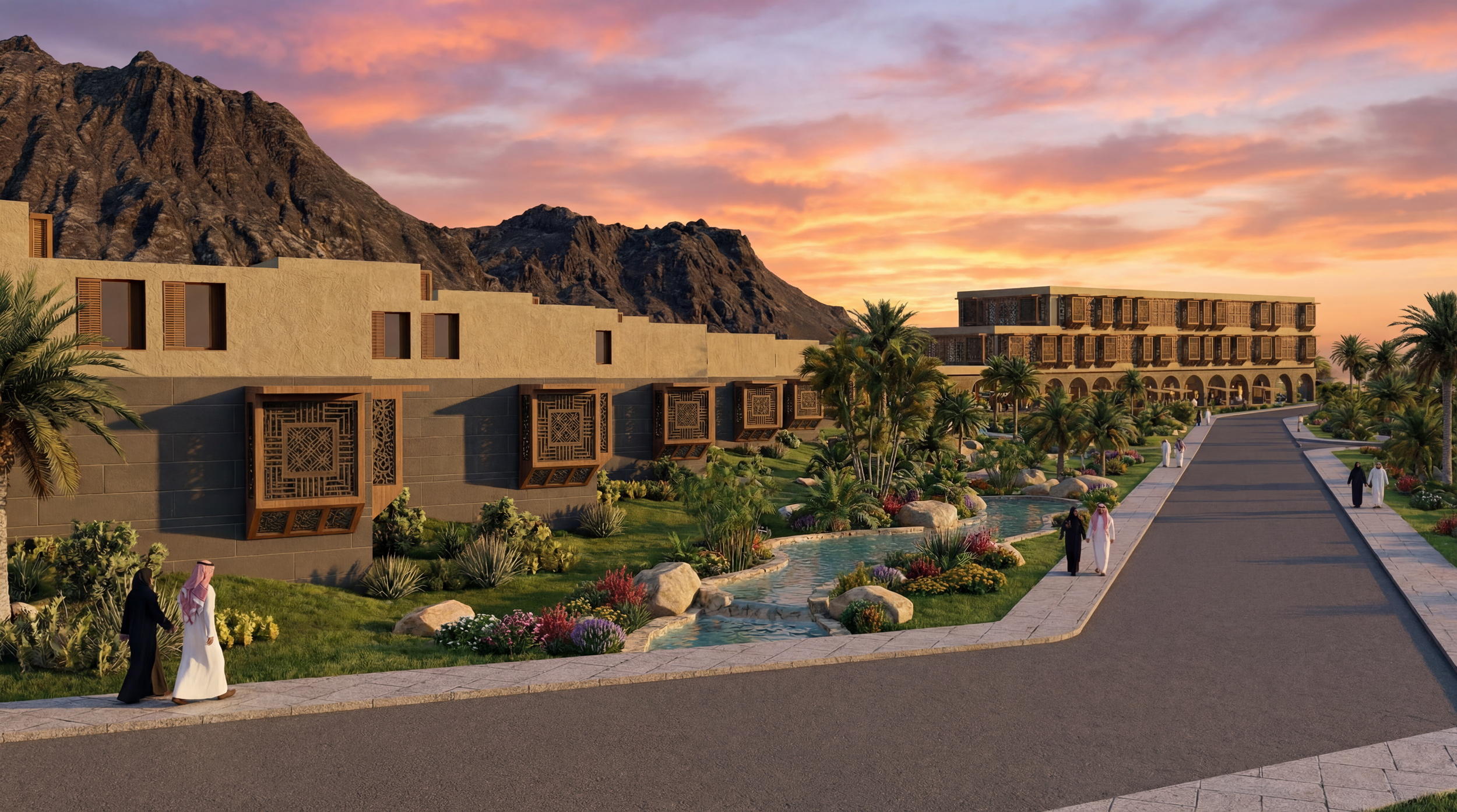 The wadi is subject to an expansive development project that will look to capitalise on its lush nature and connection to water. A new grand park is being developed along the entirety of the wadi, as well as new public spaces to create a gathering area for people in this blessed valley. With the projects to bring people to the wadi in motion, the opportunity is there to provide assets to house and attend to visitors looking to take in the beauty and bounty of al-’Aqiq